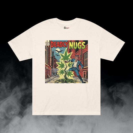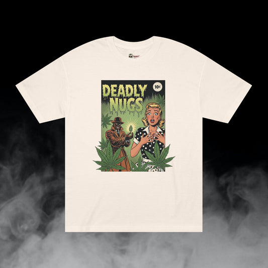 Killer Weed / Graveyard Cannabis Bud Graphic Tee / Vintage Pulp Horror Comic Style / 420 Underground Stoner Streetwear / DEADLY NUGS