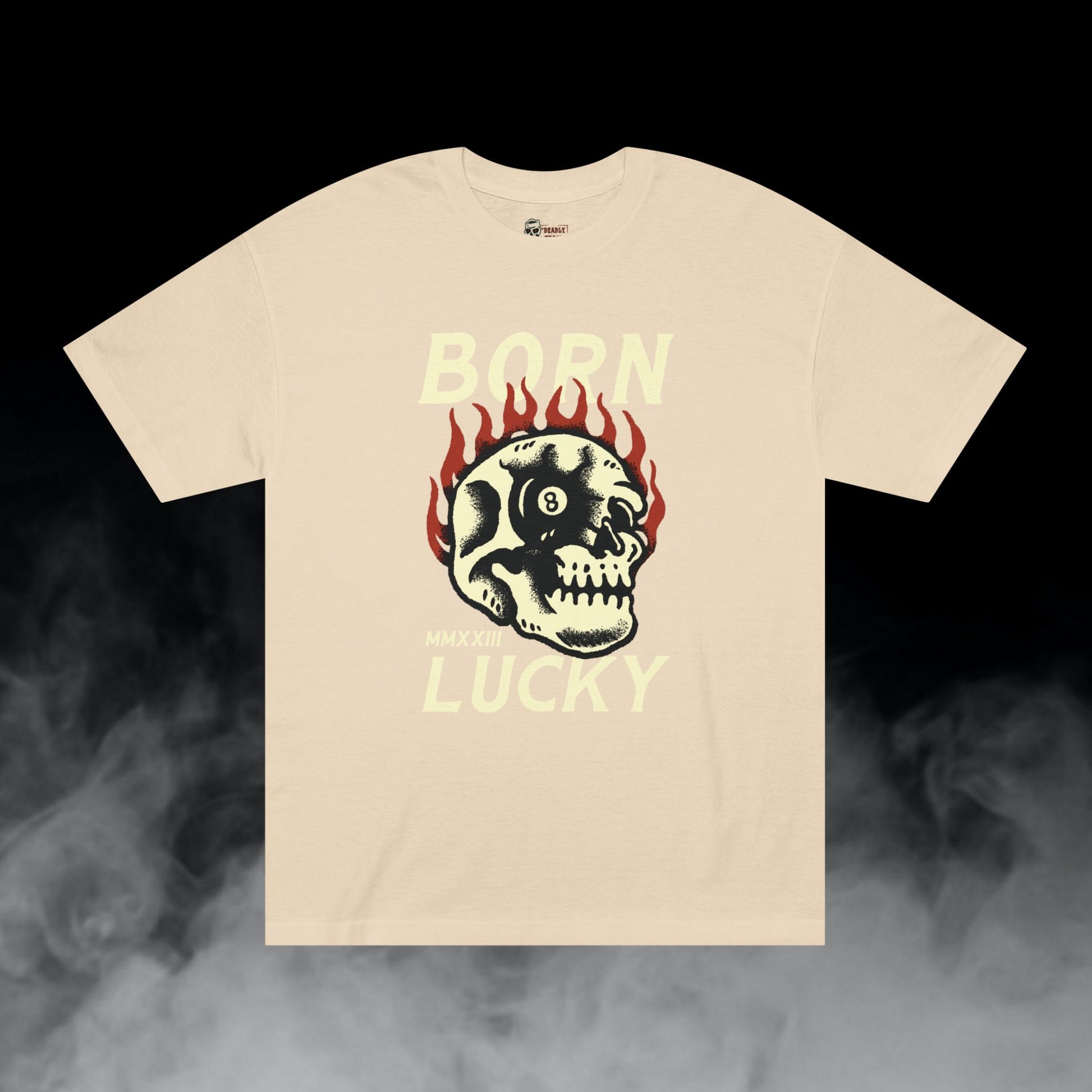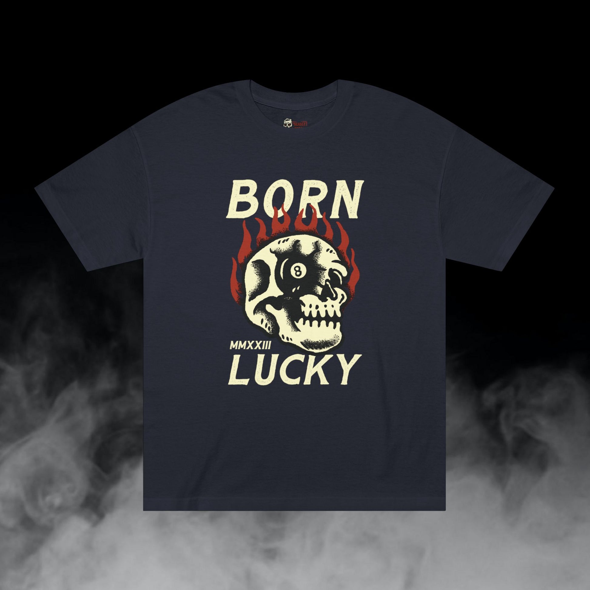 Born Lucky / Flaming Skull Eight Ball Eye Graphic Tee / Classic Cartooning Tatoo Art Style / 420 Underground Stoner Streetwear / DEADLY NUGS