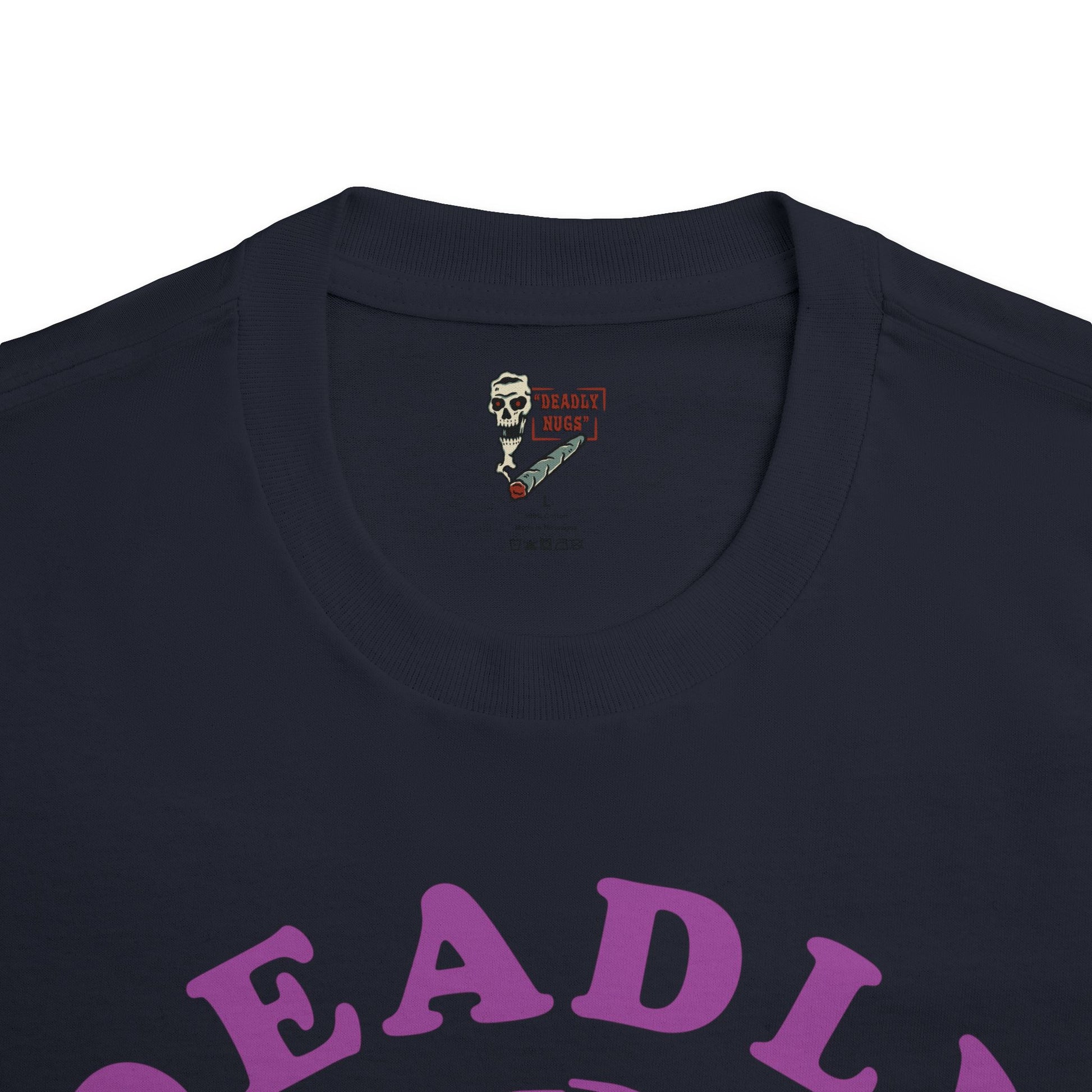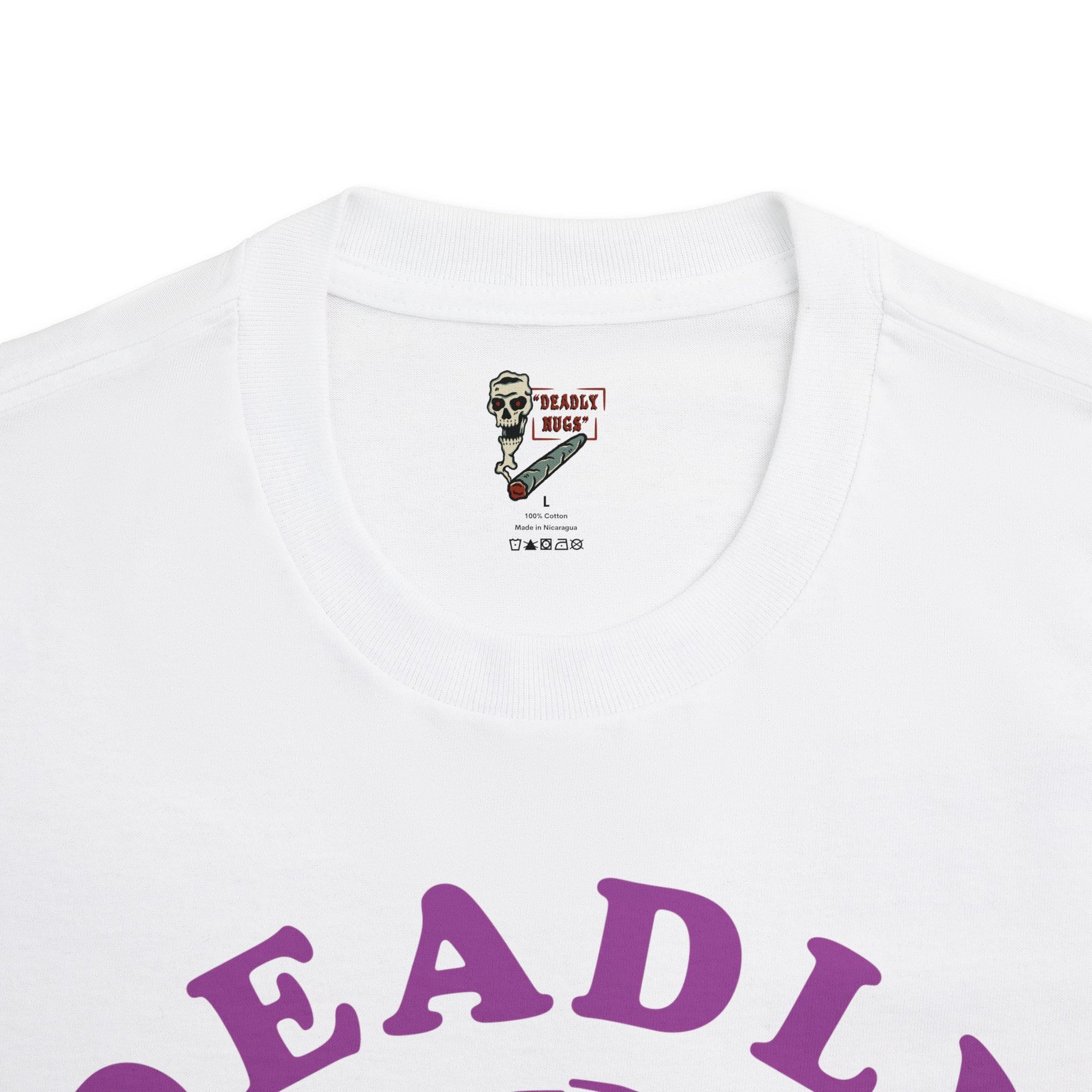 DEADLY NUGS original Flame in, Flame out T-Shirt with Purple Print