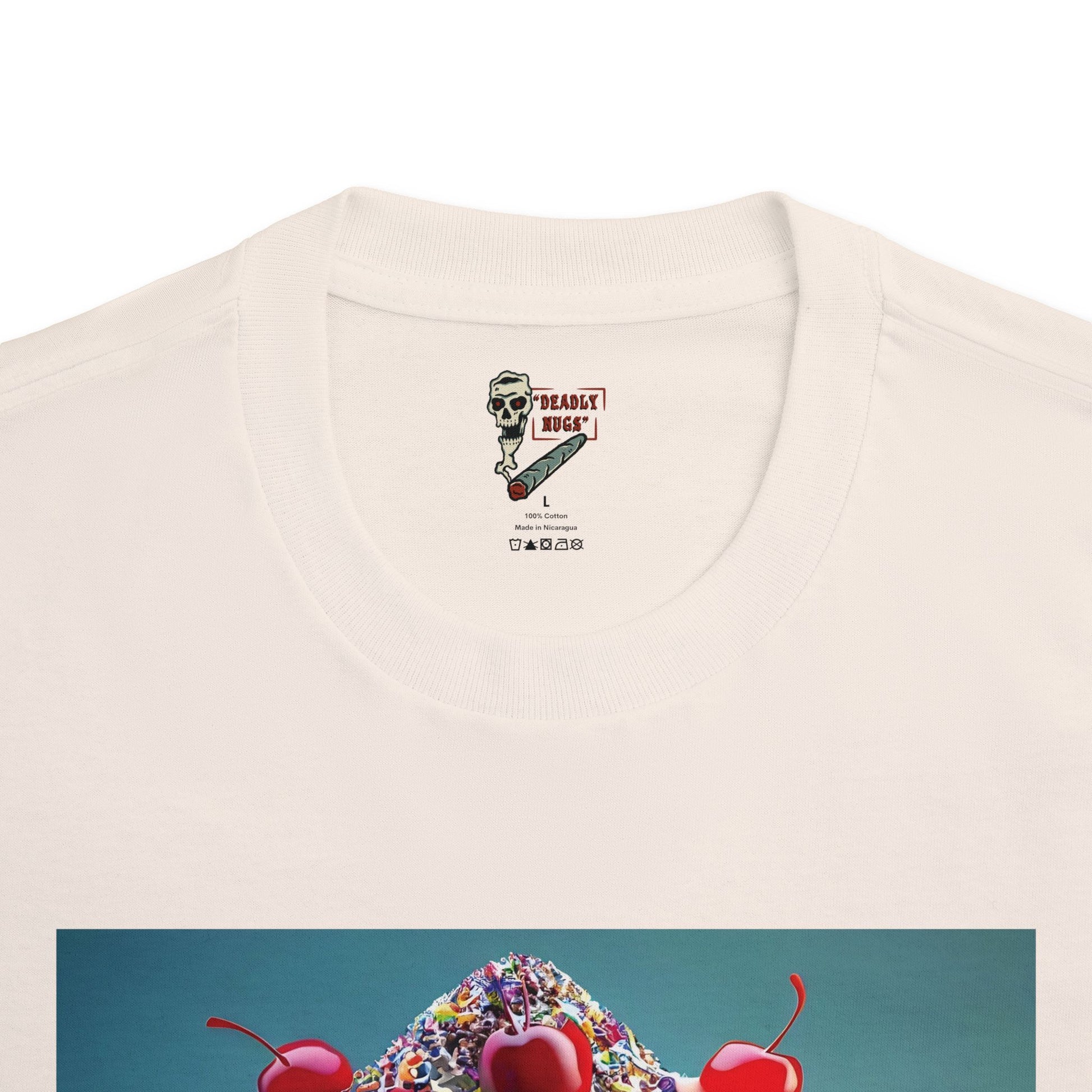 The Ice Cream T-Shirt from DEADLY NUGS is inspired by playful nostalgia, vibrant aesthetics, and sweet indulgence. The design reflects themes of retro charm, sleek typography, and modern streetwear, making it a standout piece for those who appreciate bold, whimsical fashion.