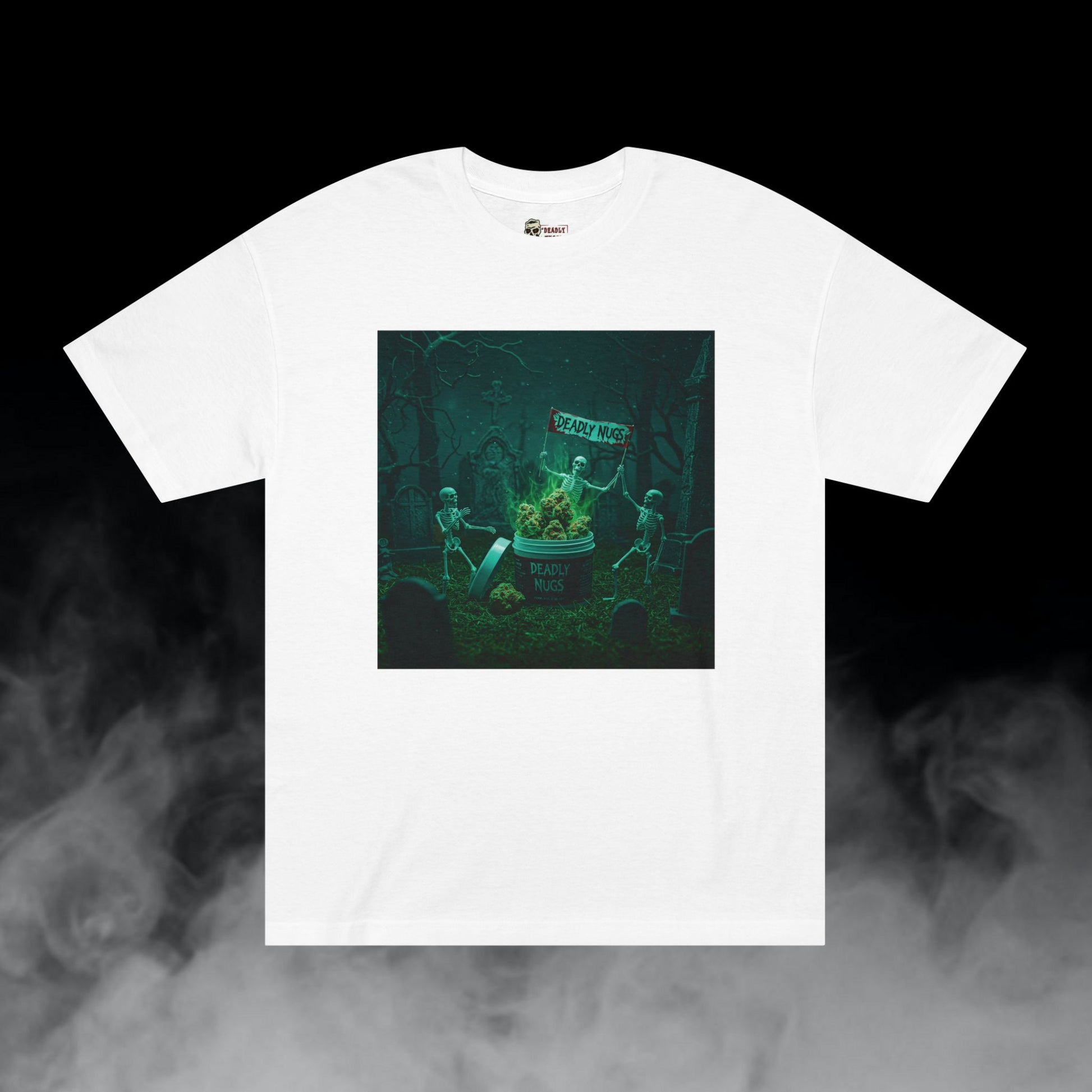 To the Grave / Skeletons with Cannabis in Graveyard Graphic Tee / Hyper-Realistic Eerie Character Art / 420 Underground Stoner Streetwear / DEADLY NUGS
