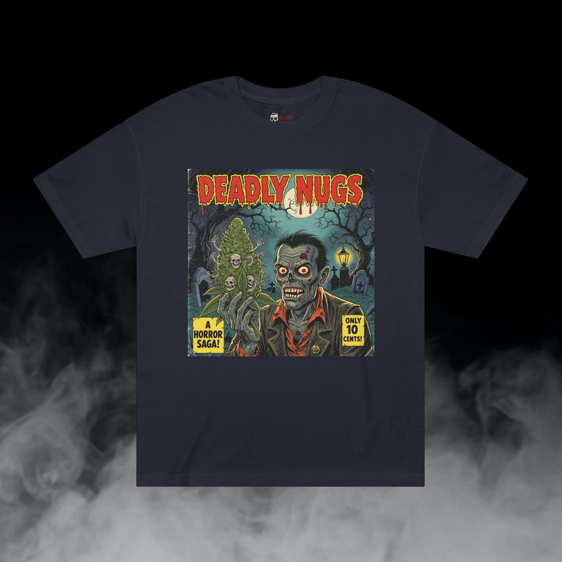 Zombie Kush / Zombie Graveyard Cannabis Bud Graphic Tee / Vintage Pulp Horror Comic Style / 420 Underground Stoner Streetwear / DEADLY NUGS